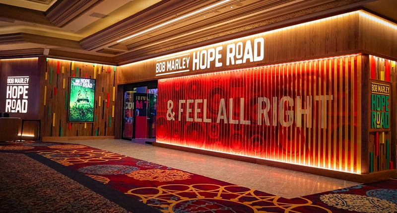 Bob Marley Hope Road is conveniently located at the Mandalay Bay Resort and Casino, just steps from the casino floor.